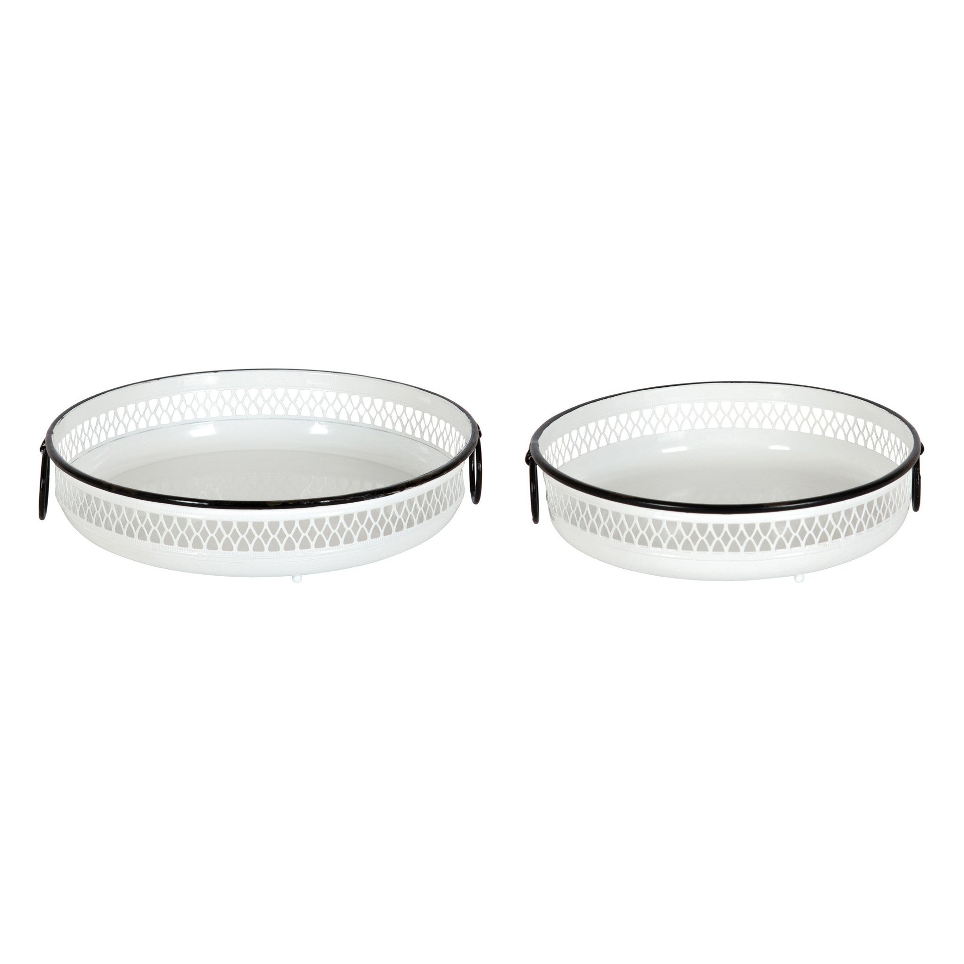 The decorative Madigan Tray Set is the perfect piece to add to your vintage farmhouse aesthetic. With a high-quality white enamel finish and a metal material, this set was made to last through multiple generations. Use it to house your aloe or jade plants, colored pencils, or your signature cocktails. The heirloom look and quality blends in well with in a rustic-style kitchen, sunny sitting room or your master bathroom sanctuary.